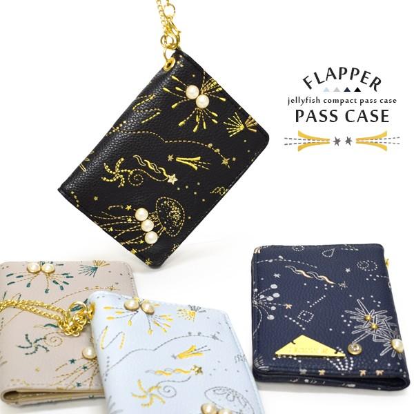 パスケース 二つ折り クラゲ くらげ 刺繍 定期入れ Icカード パール ビジュー チェーン付き カード 通勤 通学 かわいい おしゃれ 上品 Flapper Z18 095 Goods Kobe ヤフーショップ 通販 Yahoo ショッピング